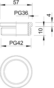Reduktion (Teil H) nach DIN 46320, mit PG-Gewinde nach DIN 40430, zum Übergang von einem PG-Gewindeloch auf eine kleinere Kabelverschraubung.
