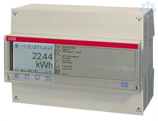 Drehstromzähler zur Messung eines Dreileiter- oder Vierleiter-Drehstromnetzes über einen Wandler-Anschluss CTVT (Wandlerverhältnis für Strom und Spannung konfigurierbar) bis maximal 6 A. Folgende Werte werden über ein hinterleuchtetes Display mit bis zu 7 Stellen ausgegeben: Wirkenergie (Klasse 0,5) und Blindenergie (Klasse 2) für Import und Export, Leistungen, Ströme, Spannungen (L-L, L-N), Frequenz, cos phi, Power Faktor und Scheinleistung (je Phase und gesamt). Die Kommunikation kann über die integrierte RS485 oder über die Infrarotschnittstelle erfolgen. Der Energiezähler hat 2 fest konfigurierte Ein- und Ausgänge. Der Ausgang kann wahlweise als Impulsausgang oder als Alarmausgang verwendet werden (bis zu 25 Alarmwerte). Die Eingänge dienen zur Steuerung der Tarife bzw. zur Zählung externer Impulse. Zusätzlich erfasst der Zähler bis zu 4 Tarife. Durch die integrierte Uhr können zeitgesteuerte Funktionen ausgeführt werden. Zähler ist geeicht nach MID und zugelassen gemäß IEC. Die Einbaubreite beträgt 7 DIN-Module.