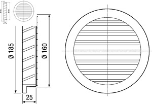 Wetterschutzgitter für Be- und Entlüftung in besonders hochwertiger Ausführung. Zum Abdecken runder Lüftungsöffnungen. Mit abgewinkelten Lamellen und Vogelschutzgitter. Mit DN 160-Stutzen für direkten Anschluss an Lüftungsrohre.Artikel: MGR 160 alu, Ausführung: rund, Luftrichtung: Be- und Entlüftung, Material: Aluminiumguss, Gewicht: 0,39 kg, Gewicht mit Verpackung: 0,39 kg, Geeignet für Nennweite: 160 mm, Freier Querschnitt: 120 cm2, Breite: 260 mm, Höhe: 240 mm, Tiefe: 81 mm, Breite mit Verpackung: 263 mm, Höhe mit Verpackung: 243 mm, Tiefe mit Verpackung: 84 mm