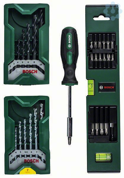 Mini-X-Line Bohrer-Set mit Wasserwaage und Handschraubendreher. Robust, kompakt und einfach zu handhaben: Mit dem Bosch-Zubehör-Set im praktischen Tragekoffer haben Sie alles im Griff. Die X-Line-Serie von Bosch bietet Ihnen eine erstklassige Basisaustattung an Zubehör in Top-Qualität: Übersichtlich angeordnet und immer griffbereit. Viel zu tun in Haus und Garten. Legen Sie los. Bohrer und Schrauberbits für alle Fälle. Regale oder Schränke aufstellen. Haken, Griffe oder Teppiche befestigen. Bilder aufhängen. Einen Zaun ziehen oder die lang geplante Holzterrasse bauen. Das Schrauber-Programm von Bosch bietet alles, um jedes Projekt, jede Reparatur oder Renovierung leicht und schnell umzusetzen. Zum Bohren und Schrauben in verschiedenen Materialien. Als Extra erhalten Sie 1 Handschraubendreher. Inhalt des Sets: 7 Metallbohrer mit Durchmesser: 2 - 10 mm aus Hochleistungsschnellstahl für präzise Bohrlöcher. 7 Steinbohrer mit Durchmesser: 3 - 8 mm mit schlagbohrfester Hartmetallspitze für Arbeiten in Mauerwerk, Kalk-, Natur- und Kunststein. Wasserwaage mit 16 hochwertigen Schrauberbits und Handschraubendreher.