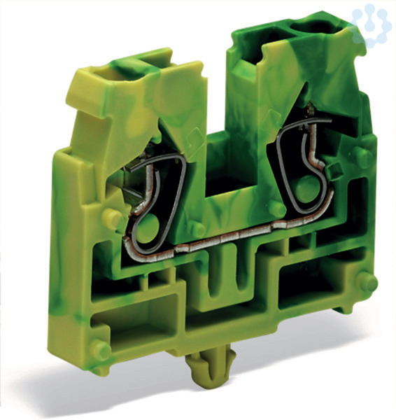 2-Leiter-Mittelklemme; ohne Drücker; mit Rastfuß; 1-polig; 2,5 mm²; CAGE CLAMP®; 2,50 mm²; grün-gelb