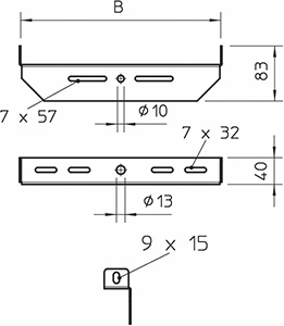 Mittenabhängung universal für die Befestigung an Gewindestangen und Hängestielen. Bevorzugter Einsatz dieser Mittenabhängung in Kombination mit Kabelleitern und Gitterrinnen.