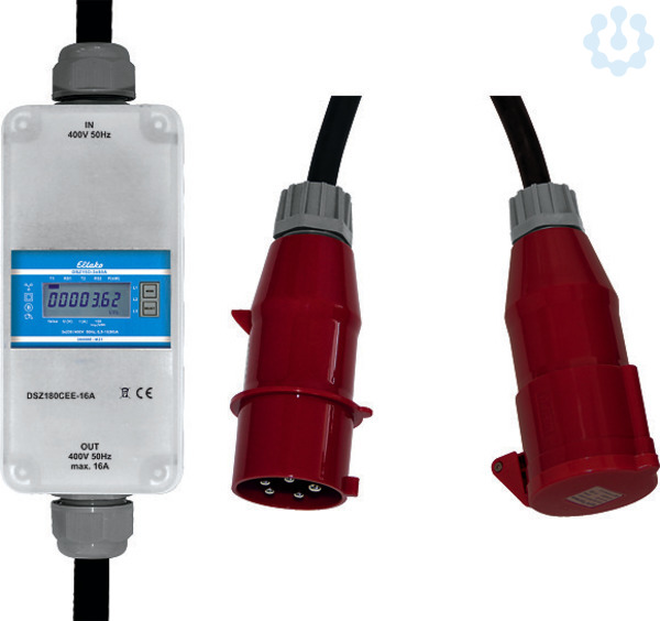 Mobiler Drehstromzähler mit CEE-Stecker 16A und CEE-Kupplung 16A. Für den Innen- und Außenbereich geeignet. Maximalstrom 16A, Stand-by-Verlust nur 0,5 Watt je Pfad. Gehäuse-Abmessungen 180x86x82mm, Anschlussleitung 1,5m (incl. Stecker und Kupplung). Genauigkeitsklasse B (1%). Dieser mobile Drehstromzähler misst die Wirkenergie anhand der zwischen den Eingängen und Ausgängen fließenden Ströme. Der Eigenverbrauch von maximal nur 0,5 Watt Wirkleistung je Pfad wird nicht gemessen und nicht angezeigt. Der Anlaufstrom ist 40mA. Das Display kann nur mit Stromversorgung abgelesen werden. Der Verbrauch ist jedoch nichtflüchtig gespeichert und wird nach einem Stromausfall sofort wieder angezeigt. Die Digitalanzeige hat 7 Stellen. Bis 99999,99kWh werden zwei Nachkommastellen angezeigt, ab 100000,0kWh nur noch eine. Der Leistungsbezug wird mit einem 100-mal je kWh blinkenden Balken im Display angezeigt.