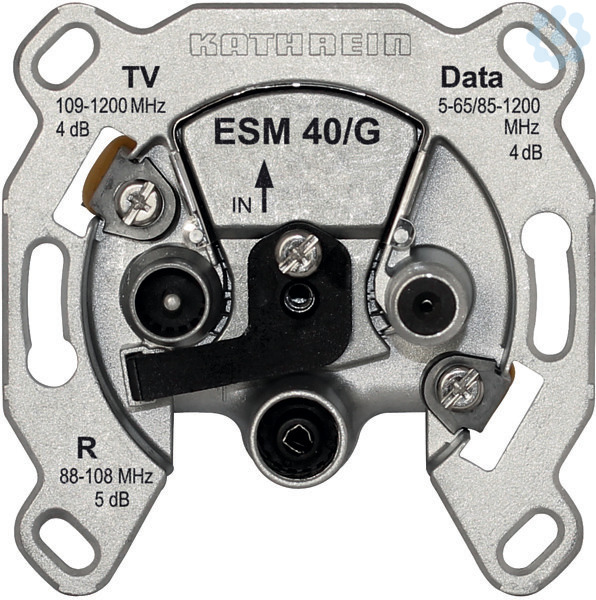 Modem-Einzelanschlussdose 3fach, selektiv, Modem typ. 5-65 87,5-1200MHz, TV typ.109-1200MHz, FM typ. 87,5-108MHz Anschlussdaempfung typ. 3,5-5 dB, Rueckweg typ. 1 dB