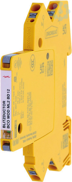 Platzsparender, modularer Kombi-Ableiter in 6 mm Baubreite und Push-in Anschlusstechnik mit Statusanzeige zum Schutz von 1 Doppelader erdpotentialfreier symmetrischer Schnittstellen. Mit Signaltrennung für Wartungszwecke.