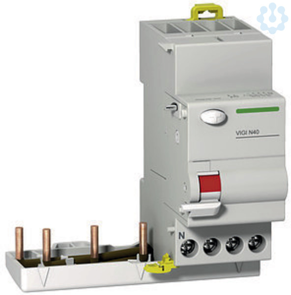 Fehlerstromschutzschalter Vigi N40 Multi 9 OEM, 300mA. 3-polig+N, Nennstrom 40A, Typ AC, Betriebsspannung (Ue) 400-415V, Isolationsspannung (Ui) 440V A-SI. Vigi N40 Fehlerstromschutzblöcke für N40N bieten Schutz gegen Stromschlag durch direkte und indirekte Berührung und Brandschutz bei Isolationsfehlern. Technologie der Auslöseeinheit- Differenzstrom. An Leitungsschutzschalter, die mit einem Vigi-Modul kombiniert werden, kann weiterhin zusätzliches Zubehör angebaut werden. Zusätzlich anreihbare Hilfsmodule (optional)- Anzeige von Schaltstellung (OF), Fehlerauslösung (SD), Arbeitsstromauslöser (MX, MX+OF), Unterspannungsauslöser (MN, MNs, MNx). Werkzeuglose Montage linksseitig am Gerät. Der Vigi N40 Fehlerstromschutzschalter erfüllt folgende Normen- IEC/EN 61009-1.