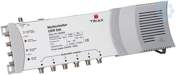 Einzel-Multischalter für einen Satelliten mit 5 Eingängen und 6 Ausgängen. Einfache und schnelle Installation durch farbliche Markierung aller Eingänge. Mit integriertem Netzteil und 22 kHz-Generator zum Betrieb mit Quatro Switch LNBs.