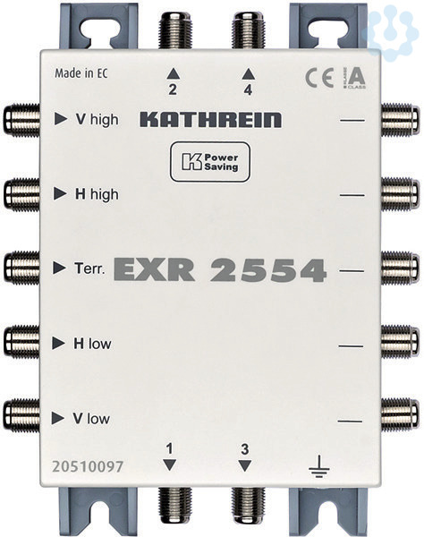 Multischalter 5 auf 4, Durchgang-1 x 5-862 MHz u. 4 x 950-2150 MHz-kaskadierbar-F-Anschluesse-Kathrein Power Saving