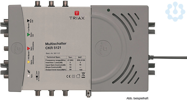 Hochwertiger Multischalter, besonders geeignet zur Versorgung vieler Teilnehmer mit konstantem Signal in bester Qualität. 22 kHz-Generator, daher geeignet für Quatro- und Quatro-Switch-(Quad) LNBs, geringe Leistungsaufnahme durch integriertes Schaltnetzteil, Pegelsteller an allen Eingängen, slope control am terrestrischen Eingang, farbliche Markierung der Eingänge, Zusatz-Spannungsversorgung für eine aktive terrestrische Antenne