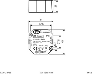 NG 12V/DC - 0,1-12W - IP65 - Primär Primär: Aderenden, Sekundär: Buchse