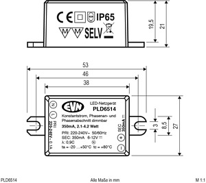 NG 350mA - 2,1-4,2W - IP65 - Primär dimmbar über Phasenan -und abschnit