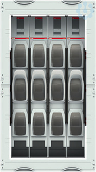 Innenausbau Modul, CombiLine, montiert im Schrank eingebaut, für Sammelschienensystem 185 mm NH-Lasttrennleisten, Rasteinheit 6 RE = 900 mm, Feldbreite 2 = 500 mm, 120 Platzeinheiten, nutzbare Breite von 400 mm, bestückt mit 4 NH-Sicherungslasttrennleisten NH1, Betriebsmittel Fabrikat: ABB, InLine II ZHBM + EFM, für Sammelschienensystem 3-polig, Ausrichtung Sammelschienen: horizontal, mit Sammelschienenhalter ZX522, Sammelschienenmittenabstand: 185 mm, für maximal 3 Cu-Schienen, (Sammelschienen müssen separat bestellt werden), Bemessungsstrom In max. 850 A, Abdeckungen aus Kunststoff, 90 Grad Druck-Drehverschluss, RAL 7035, Ausführung der Abdeckung: mit Ausschnitt, einsetzbar ab einer Schranktiefe von 275 mm, WR Montagegerüst muss separat bestellt werden