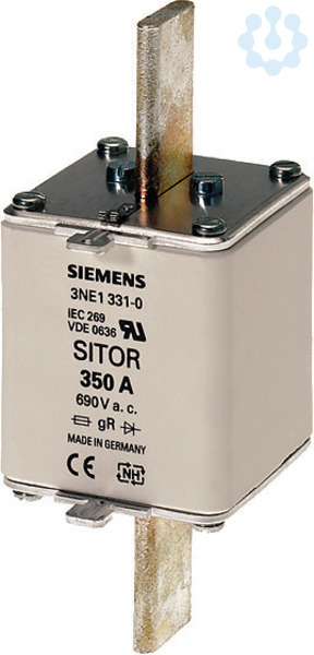 SITOR-Sicherungseinsatz, mit Messerkontakten, NH2, In: 350 A, gR, Un AC: 690 V, Un DC: 250 V, Stirnkennmelder Halbleiterschutzsicherungen SITOR 3NE, 3NC schützen Leistungshalbleiter vor den Auswirkungen eines Kurzschlusses. Das SITOR-Sicherungssystem von Siemens als wichtiger Bestandteil der SENTRON Schutzkomponenten für die Elektroinstallation bietet effektiven Personen-, Geräte- und Anlagenschutz durch sicheres Abschalten im Überlast- und Kurzschlussfall. Der Einsatzbereich umfasst zusätzlich Frequenzumrichter mit Sicherungen im Eingangs- und im DC-Zwischenkreis sowie auch USV-Anlagen und Sanftstarter für Motoren. Die Siemens SITOR-Sicherungen zeichnen sich vor allem aus durch: 1. Superflinke Abschaltcharakteristik im Vergleich zu herkömmlichen NH-Sicherungen. 2. Auch Leistungshalbleiter werden bei Kurzschluss sicher geschützt. 3. Der Siemens Qualitätsstandard sichert eine sehr gute Kennlinientreue. 4. SITOR-Zylindersicherungen sind nach IEC und UL und größtenteils auch CCC zugelassen und damit weltweit einsetzbar. 5. Teilweise geeignet für den Einbau in NH-Sicherungsunterteile, in NH-Sicherungslasttrennschalter und Lasttrennschalter mit Sicherungen.