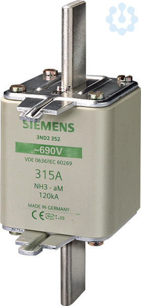 NH-Sicherungseinsatz, NH3, In: 355 A, aM, Un AC: 690 V, Stirnkennmelder, spannungsführende Grifflaschen NH-Sicherungseinsatz SENTRON 3ND für den Schaltgeräteschutz in Motorenstromkreisen.3ND Sicherungen bieten effektiven Schutz im Falle eines Kurzschlusses und sind durch ihre träge Abschaltcharakteristik speziell für den Betrieb in Motorenstromkreisen geeignet.Die NH-Sicherungseinsätze 3ND sind von 6 A bis 630 A und in den Baugrößen 000, 00, 0, 1, 2 und 3 verfügbar.SENTRON Schutzschaltgeräte - Eine sichere Wahl. Jetzt noch smarter.