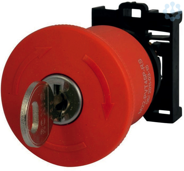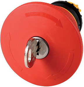 NOT-HALT-/NOT-AUS-Taste, Sortiment: RMQ-Titan, Einzelgerät, Bauform: Palmenform, Durchmesser: 45 mm, Beleuchtung: unbeleuchtet, Schlüsselentriegelung, Beschreibung: überlistungssicher nach ISO 13850/EN 418, Farbe Pilzstößel: rot, Farbe Tastensockel: gelb, RAL 3000, Schutzart: IP66, IP67, IP69K, Anbindung an SmartWire-DT: nein, Hinweise: Max. Bestückung: 4 x M22-(C)K01, …10 oder 2 x M22-(C)K02, …20, …11, Information zum Lieferumfang: 1 Schlüssel im Lieferumfang enthalten, Normen und Bestimmungen: IEC/EN 60947, VDE 0660