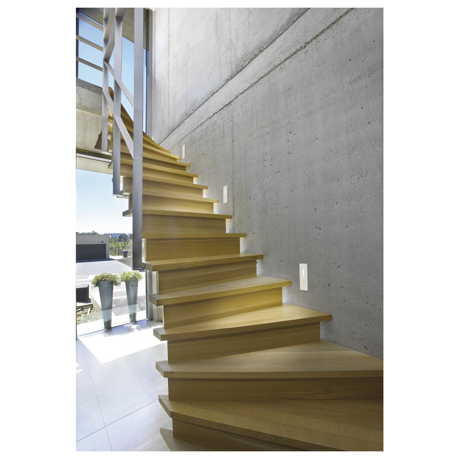 Aluminium Wandeinbauleuchte NOTAPO I WL. Die nicht sichtbar verbauten LED gibt ihr Licht indirekt an die zu beleuchtende Fläche ab. Dadurch wird eine blendfreie Beleuchtung, beispielsweise von Gehwegen und Treppen ermöglicht. Die NOTAPO I Einbauleuchte ist erhältlich in weißer Gehäusefarbe. Ein Einbaurahmen sowie eine Einbaudose für die Montage in Mauerwerk sind optional erhältlich. Diese Leuchte enthält eingebaute LED-Lampen.