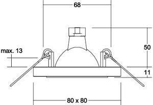 Einbaudownlight, GX5,3, chrom, quadratisch. Ausgeführt in kompakter Bauform für werkzeuglose Schnellmontage zum Deckeneinbau. Ausführung: GX5,3, Montageart: Einbaumontage, Montageort: Deckenmontage, Material: Aluminiumguss / Glas, Schutzart raumseitig: nach DIN EN 60529: IP20, Schutzklasse: (EN 61140) III, Spannung: 12V, Leistung: 50 W, Anzahl der Leuchtmittel / Fassungen: 1 Stück, Verstellbarkeit: nicht verstellbar, ohne Betriebsgerät, Art der Dimmung: abhängig vom Betriebsgerät.