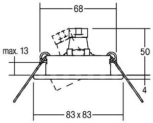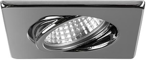 Einbaustrahler, nickel, quadratisch. Ausgeführt in kompakter Bauform für werkzeuglose Schnellmontage zum Deckeneinbau. Ausführung: GX5,3, Montageart: Einbaumontage, Montageort: Deckenmontage, Material: Stahl, Schutzart: nach DIN EN 60529: IP20, Schutzklasse: (EN 61140) III, Spannung: 12V, Leistung: 50W, Anzahl der Leuchtmittel / Fassungen: 1.0 Stk, Verstellbarkeit: schwenkbar, Art der Dimmung: abhängig vom Betriebsgerät.