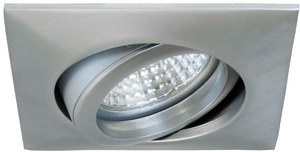 Einbaustrahler, GX5,3, chrom matt, quadratisch. Ausgeführt in kompakter Bauform für werkzeuglose Schnellmontage zum Deckeneinbau. Ausführung: GX5,3, Montageart: Einbaumontage, Montageort: Deckenmontage, Material: Zinkguss / Aluminiumguss, Schutzart raumseitig: nach DIN EN 60529: IP20, Schutzklasse: (EN 61140) III, Spannung: 12V, Leistung: 50 W, Anzahl der Leuchtmittel / Fassungen: 1 Stück, Verstellbarkeit: schwenkbar, ohne Betriebsgerät, Art der Dimmung: abhängig vom Betriebsgerät.