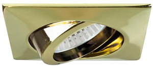 Einbaustrahler, GX5,3, gold, quadratisch. Ausgeführt in kompakter Bauform für werkzeuglose Schnellmontage zum Deckeneinbau. Ausführung: GX5,3, Montageart: Einbaumontage, Montageort: Deckenmontage, Material: Zinkguss / Aluminiumguss, Schutzart raumseitig: nach DIN EN 60529: IP20, Schutzklasse: (EN 61140) III, Spannung: 12V, Leistung: 50 W, Anzahl der Leuchtmittel / Fassungen: 1 Stück, Verstellbarkeit: schwenkbar, ohne Betriebsgerät, Art der Dimmung: abhängig vom Betriebsgerät.