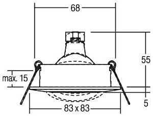 Einbaustrahler, GX5,3, weiß, quadratisch. Ausgeführt in kompakter Bauform für werkzeuglose Schnellmontage zum Deckeneinbau. Ausführung: GX5,3, Montageart: Einbaumontage, Montageort: Deckenmontage, Material: Zinkguss / Aluminiumguss, Schutzart raumseitig: nach DIN EN 60529: IP20, Schutzklasse: (EN 61140) III, Spannung: 12V, Leistung: 50 W, Anzahl der Leuchtmittel / Fassungen: 1 Stück, Verstellbarkeit: schwenkbar, ohne Betriebsgerät, Art der Dimmung: abhängig vom Betriebsgerät.