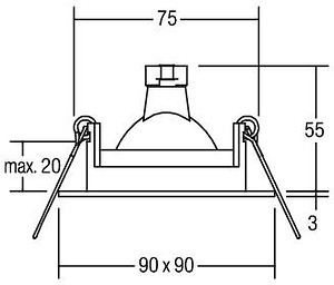 Einbaudownlight, IP65, weiß, quadratisch. Ausgeführt in kompakter Bauform für werkzeuglose Schnellmontage zum Deckeneinbau. Ausführung: GX5,3, Montageart: Einbaumontage, Montageort: Deckenmontage, Material: Aluminium / Glas, Schutzart: nach DIN EN 60529: IP65*, Schutzklasse: (EN 61140) III, Spannung: 12V, Leistung: 35W, Anzahl der Leuchtmittel / Fassungen: 1.0 Stk, ohne Betriebsgerät, Art der Dimmung: abhängig vom Betriebsgerät.