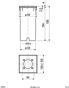 Der Leuchtenkörper ist aus massivem Aluminium, die Abdeckplatte hingegen aus V4A-Edelstahl gefertigt. Durch die 2, am Boden angebrachten Kabelverschraubungen, welche für Kabel bis 12mm Durchmesser geeignet sind, ist es möglich, mehrere Leuchten durchzuverdrahten, wodurch die Installation bei längeren Leitungswegen deutlich erleichtert wird. Es besteht die Möglichkeit, die Leuchte ohne den im Lieferumfang enthaltenen Kunststoff-Einbautopf zu montieren, in diesem Fall beträgt die Einbautiefe 160mm und der benötigte Lochausschnitt 75mm. Durch die Niedervoltfassung können unterschiedliche Leuchtmittel bis max. 35W in der Leuchte betrieben werden. Die maximale Überfahrgeschwindigkeit beträgt 20km/h.
