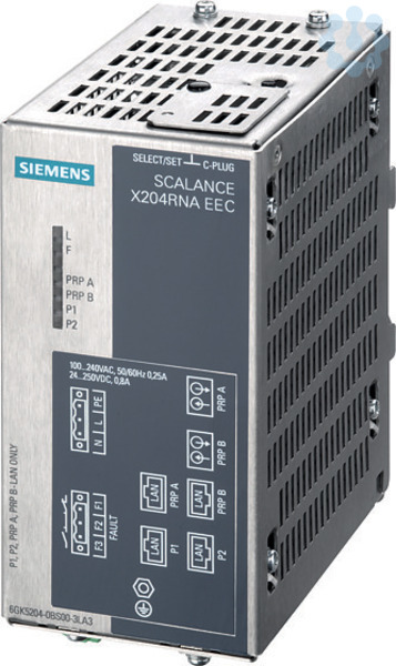SCALANCE X204RNA EEC, Redundant Network Access 2x 100 Mbit/s RJ45 Ports, 2x 100 Mbit/s Combo-Ports, LED-Diagnose, Fehlermelde- Kontakt mit Set-Taster, einfache Spannungsversorgung, Netzwerk-Management, inkl. elektron. Handbuch auf CD-ROM, C-PLUG optional für HSR Netzwerk,. SCALANCE X204RNA EEC Managed, Layer 2 Kompakt Switch, 2x 100 Mbit/s RJ45, 2x 100 Mbit/s Combo-Ports zum Anschluss von nicht HSR-Geräten an HSR- Netzwerke. Für viele Aufgaben geeignet: Der SCALANCE X204RNA bietet eine große Vielfalt an hochperformanten Ethernet Switches in unterschiedlichen Varianten von Gigabit-Switches bis robusten Switches für die Anforderungen der Prozess- sowie diskreten Automatisierung. Die leistungsstarken Gigabit-Switches SCALANCE X204RNA wurden für anspruchsvolle Netzwerke in industriellen Umgebungen entwickelt. Dank seiner leistungsstarken Hardware und seinen fortschrittlichen Funktionen profitieren sie von einer zuverlässigen und skalierbaren Netzwerkinfrastruktur für jede Anwendung. Lösen Sie einfach und zuverlässig viele industrielle Anwendungen.