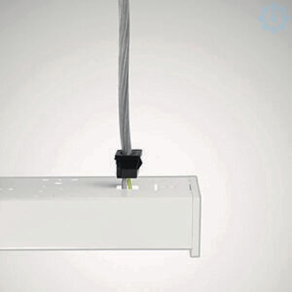 Netzanschlussleitung für Hängeleuchten Typ: Solvan Flow D...ETDD (Deckenanbauleuchte). Bei abgehängter Montage. 5-adrige Ausführung, Ø 1,5 mm2. Leitungslänge 2000 mm. Mit integrierter Snap-In-Zugentlastung.