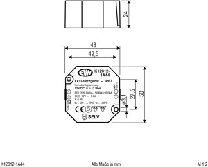 Netzgerät - 12VDC - 0,1-12W - IP44 Primär Schukostecker, Sekundär Buch