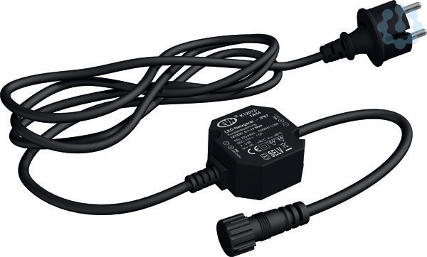 Der kurzschlussfeste Sicherheitstransformator kann auf Grund der höheren Schutzart problemlos im Außenbereich verwendet werden, lässt sich aber z. B. auch beim Möbelbau verwenden, da die MM-Kennzeichnung gegeben ist. Das Netzgerät verfügt primärseitig über eine 1,8m lange Gummileitung mit Konturenstecker und sekundärseitig über eine 20cm lange Gummileitung mit Buchse für das IP44-Stecksystem. Technische Daten: Versorgungsspannung: 220-240V/AC und 180-250V/DC, ta: -20°C - 50°C, tc: 80°C, Powerfaktor: 0,95.