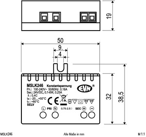 Das LED-Netzgerät lässt sich auf Grund der kleinen Bauform perfekt in Schalterdosen verbauen, kann aber auch beim Möbelbau zum Einsatz gebracht werden, da die MM-Kennzeichnung gegeben ist. Der Anschluss primärseitig und sekundärseitig erfolgt durch Schraubklemmen, welche für Kabel von 0,75mm² - 2,5mm² geeignet sind. Technische Daten: Versorgungsspannung: 100-240V/AC und 180-250V/DC, ta: -20°C - 50°C, tc: 80°C, Powerfaktor: 0,40.