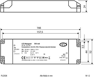 Netzgerät 500mA - 20-40W - IP20 - P dimmbar mit Phasenan- und Phasenabschnit