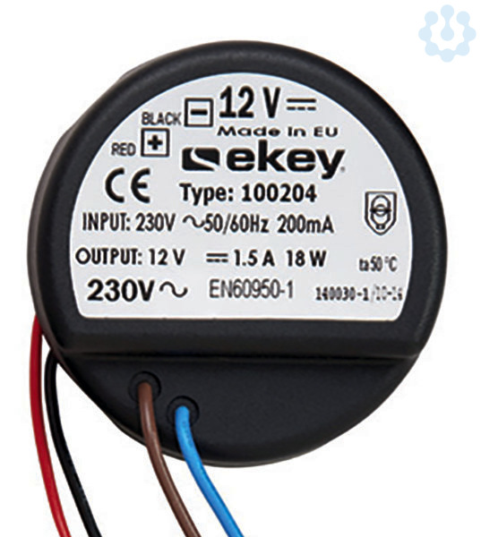 Das ekey Netzteil Unterputz mit 230 VAC Eingangsspannung, 12 VDC Ausgangsspannung und 2 A Ausgangstrom versorgt die ekey-Geräte mit der benötigten elektrischen Energie. Dieses Netzteil ist für die Verwendung im Heim- und Gewerbebereich vorgesehen. Das ekey Netzteil Unterputz ist für die ortsfeste Unterputzmontage an unbeweglichen Teilen wie Unterputzdosen und für den Einsatz im geschützten Innenbereich vorgesehen.