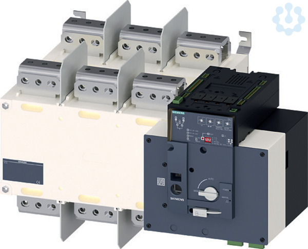 SENTRON, ATE, Netzumschalter 3KC, automatisch, ATSE, 3- polig, Iu: 3200 A, Ue AC: 415 V, Ie bei AC-33 B bei 415V: 1250 A, Schraubbefestigung, Motorantrieb, am rechten Ende, langer Drehgriff, Schienenanschluss Netzumschalter 3KC bis 3200 A für die permanente Stromversorgung. Netzumschalter 3KC von Siemens stehen für hohe Leistung, einfache Installation und sicheren Betrieb. Im Portfolio finden Sie handbetätigte MTSE-, fernbetätigte RTSE- und automatische ATSE-Netzumschalter in unterschiedlichen Ausführungen für vielfältige Schaltaufgaben. Netzumschalter 3KC dienen in Energieversorgungsnetzen zum Lasttransfer zwischen einer normalen und alternativen Quelle. Auch das Umschalten zwischen zwei Lasten ist möglich. 1.Kurze Schaltzeiten bei ATSE und RTSE (bis 160 A <, 180 ms). 2. Flexibel einsetzbar dank kompakter Bauweise und umfangreichem Zubehör. 3. Erhöhte Sicherheit während Wartungsarbeiten durch Vorhängeschlosssperre. 4. Schnelle Montage an der Hutschiene bei Baugrößen bis 160 A. 5. Effizientes Engineering durch umfangreiche CAx-Daten. 6. Unkomplizierte Dokumentation mit dem Handbuch-Konfigurator. 7. Ideal für die kontinuierliche Stromversorgung (USV) z. B. von Rechnerräumen, Fertigungsstraßen im Dauerbetrieb oder großen Infrastrukturen wie Flughäfen (RTSE- und ATSE-Varianten).