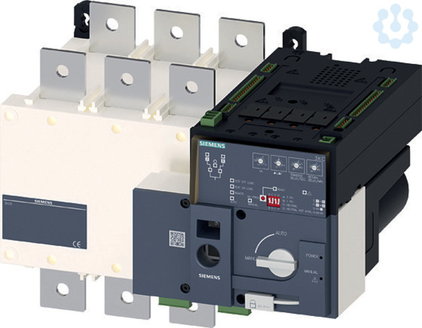 SENTRON, ATE, Netzumschalter 3KC, automatisch, ATSE, 3- polig, Iu: 630 A, Ue AC: 415 V, Ie bei AC-33 B bei 415V: 400 A, Ie bei AC-23 A bei 690V: 400 A, Schraubbefestigung, Motorantrieb, am rechten Ende, langer Drehgriff, Schienenanschluss Netzumschalter 3KC bis 3200 A für die permanente Stromversorgung. Netzumschalter 3KC von Siemens stehen für hohe Leistung, einfache Installation und sicheren Betrieb. Im Portfolio finden Sie handbetätigte MTSE-, fernbetätigte RTSE- und automatische ATSE-Netzumschalter in unterschiedlichen Ausführungen für vielfältige Schaltaufgaben. Netzumschalter 3KC dienen in Energieversorgungsnetzen zum Lasttransfer zwischen einer normalen und alternativen Quelle. Auch das Umschalten zwischen zwei Lasten ist möglich. 1.Kurze Schaltzeiten bei ATSE und RTSE (bis 160 A <, 180 ms). 2. Flexibel einsetzbar dank kompakter Bauweise und umfangreichem Zubehör. 3. Erhöhte Sicherheit während Wartungsarbeiten durch Vorhängeschlosssperre. 4. Schnelle Montage an der Hutschiene bei Baugrößen bis 160 A. 5. Effizientes Engineering durch umfangreiche CAx-Daten. 6. Unkomplizierte Dokumentation mit dem Handbuch-Konfigurator. 7. Ideal für die kontinuierliche Stromversorgung (USV) z. B. von Rechnerräumen, Fertigungsstraßen im Dauerbetrieb oder großen Infrastrukturen wie Flughäfen (RTSE- und ATSE-Varianten).