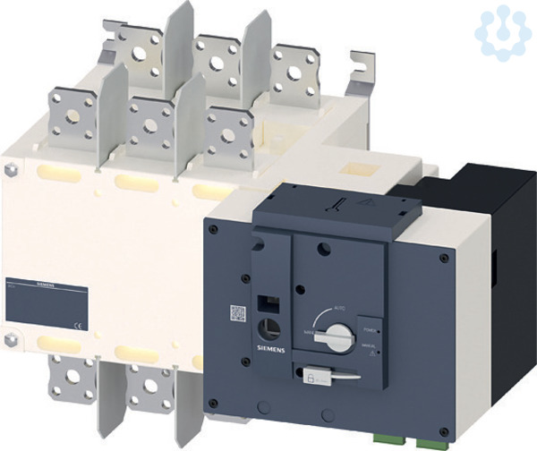 SENTRON, Netzumschalter 3KC, fernbetätigt, RTSE, 3-polig, Iu: 1000 A, Ue AC: 415 V, Ie bei AC-33 B bei 415V: 1000 A, Ie bei AC-23 A bei 690V: 630 A, Schraubbefestigung, Motorantrieb, am rechten Ende, langer Drehgriff, Schienenanschluss Netzumschalter 3KC bis 3200 A für die permanente Stromversorgung. Netzumschalter 3KC von Siemens stehen für hohe Leistung, einfache Installation und sicheren Betrieb. Im Portfolio finden Sie handbetätigte MTSE-, fernbetätigte RTSE- und automatische ATSE-Netzumschalter in unterschiedlichen Ausführungen für vielfältige Schaltaufgaben. Netzumschalter 3KC dienen in Energieversorgungsnetzen zum Lasttransfer zwischen einer normalen und alternativen Quelle. Auch das Umschalten zwischen zwei Lasten ist möglich. 1.Kurze Schaltzeiten bei ATSE und RTSE (bis 160 A <, 180 ms). 2. Flexibel einsetzbar dank kompakter Bauweise und umfangreichem Zubehör. 3. Erhöhte Sicherheit während Wartungsarbeiten durch Vorhängeschlosssperre. 4. Schnelle Montage an der Hutschiene bei Baugrößen bis 160 A. 5. Effizientes Engineering durch umfangreiche CAx-Daten. 6. Unkomplizierte Dokumentation mit dem Handbuch-Konfigurator. 7. Ideal für die kontinuierliche Stromversorgung (USV) z. B. von Rechnerräumen, Fertigungsstraßen im Dauerbetrieb oder großen Infrastrukturen wie Flughäfen (RTSE- und ATSE-Varianten).