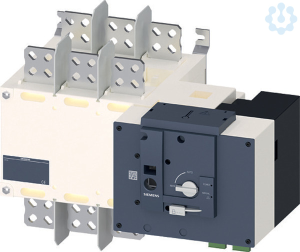 SENTRON, Netzumschalter 3KC, fernbetätigt, RTSE, 3-polig, Iu: 1250 A, Ue AC: 415 V, Ie bei AC-33 B bei 415V: 1000 A, Ie bei AC-23 A bei 690V: 800 A, Schraubbefestigung, Motorantrieb, am rechten Ende, langer Drehgriff, Schienenanschluss Netzumschalter 3KC bis 3200 A für die permanente Stromversorgung. Netzumschalter 3KC von Siemens stehen für hohe Leistung, einfache Installation und sicheren Betrieb. Im Portfolio finden Sie handbetätigte MTSE-, fernbetätigte RTSE- und automatische ATSE-Netzumschalter in unterschiedlichen Ausführungen für vielfältige Schaltaufgaben. Netzumschalter 3KC dienen in Energieversorgungsnetzen zum Lasttransfer zwischen einer normalen und alternativen Quelle. Auch das Umschalten zwischen zwei Lasten ist möglich. 1.Kurze Schaltzeiten bei ATSE und RTSE (bis 160 A <, 180 ms). 2. Flexibel einsetzbar dank kompakter Bauweise und umfangreichem Zubehör. 3. Erhöhte Sicherheit während Wartungsarbeiten durch Vorhängeschlosssperre. 4. Schnelle Montage an der Hutschiene bei Baugrößen bis 160 A. 5. Effizientes Engineering durch umfangreiche CAx-Daten. 6. Unkomplizierte Dokumentation mit dem Handbuch-Konfigurator. 7. Ideal für die kontinuierliche Stromversorgung (USV) z. B. von Rechnerräumen, Fertigungsstraßen im Dauerbetrieb oder großen Infrastrukturen wie Flughäfen (RTSE- und ATSE-Varianten).