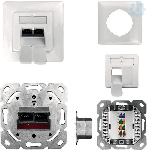 Datendose, Netzwerkdose RJ45, Unterputz, Cat.6A, CI.Ea, 500 MHz, 2-Port, geschirmt, weiss, Rechts Links
