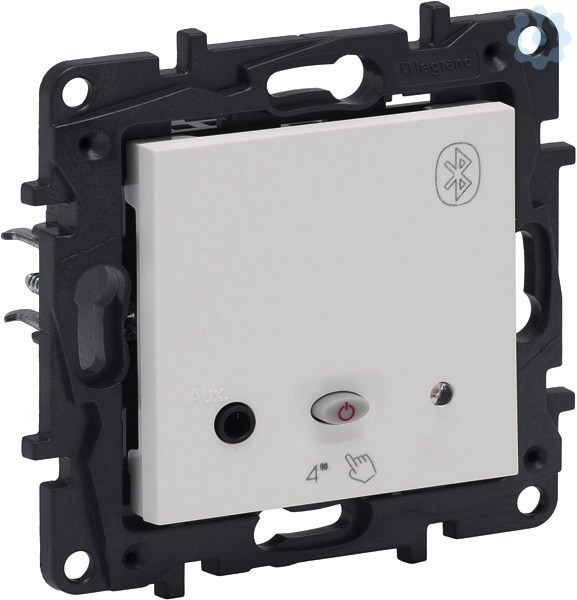 Die Niloe Step Einsätze sind für Spreizkrallen- und Schraubbefestigung geeignet und werden mit roter Staubschutzabdeckung geliefert. Verwendbar für den Anschluss von starren und flexiblen Leitern mittels Steck- (SL) oder Schraubklemmen (SK). Zu komplettieren mit Abdeckrahmen von Niloe Step. Bluetooth Modul inklusive externem Netzgerät. Erlaubt drahtlose (via Bluetooth) oder drahtgebundene Radio- und Musikübertragung (Jack 3,5 mm) von Smartphones, MP3-Playern oder anderen mobilen Geräten. Die Lautsprecher werden direkt an das Bluetooth-Modul angeschlossen(Schraubklemmen: 2 x 1,5 mm2) für Mono- oder Stereosignal an Lautsprechern mit 4, 8 oder 16 Ohm. Farbe: Ultraweiß