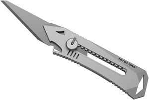 Das Mehrzweckmesser ist vollständig aus Titan gefertigt. Die Klinge stammt vom Japanischen Herstselle OLFA Blades, sie lässt sich leicht aus dem Griffstück herausschieben und verriegeln.