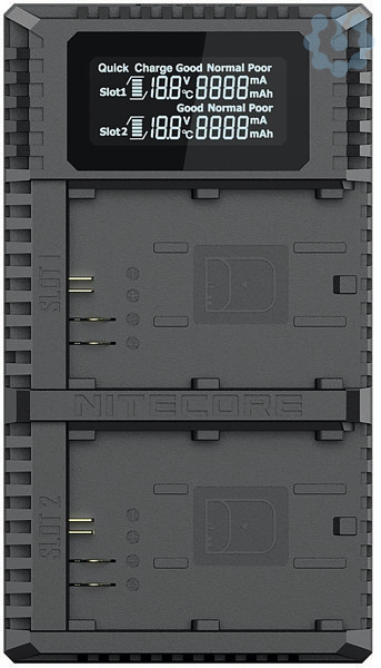 Das Nitecore UCN2 Pro Ladegerät bietet die Möglichkeit zwei Canon Akkus des Typs LP-E6N gleichzeitig aufzuladen. Aufgrund des Micro-USB Anschlusses eignet sich das Ladegerät perfekt für unterwegs. Der hochauflösende LCD-Display gibt Echtzeitinformationen über den Akkuzustand, Kapazität, Ladestand, Ladestrom und die Akku-Spannung.