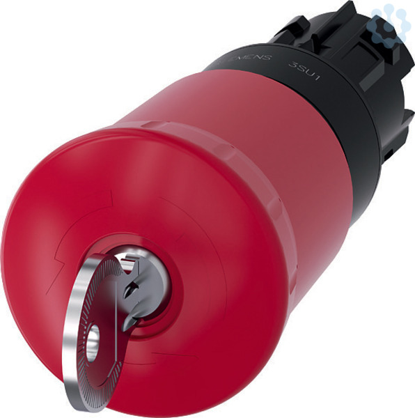 NOT-HALT-Pilzdrucktaster, 22 mm, rund, Kunststoff, rot, 40 mm, mit Schloss BKS, Schließ-Nr. E7 (VW), zwangsläufige Verrastung, gemäß DIN EN ISO 13850, Schlossentriegelung, Lieferung ohne Schlüssel NOT-HALT-Pilzdrucktaster SIRIUS ACT nach DIN EN ISO 13850 zur Steuerung von sicherheitsgerichteten Anwendungen mit Überlistsicherheit.Unter dem Markennamen SIRIUS ACT bietet Siemens ein einzigartiges Portfolio an Befehls- und Meldegeräten mit weltweiten Produkt-Zulassungen in drei modernen Designreihen aus robustem Echtmetall und hochwertigem Kunststoff.Das innovative Aufschnappkonzept vereinfacht die Montage so weit, dass dafür nur eine Hand und kein Spezialwerkzeug erforderlich ist. Als Montagebohrungen genügen nutfreie Löcher, da bereits ein 100%iger Verdrehschutz integriert ist.Dank der durchgängig hohen Schutzart sind die robusten Geräte industrietauglich und für den Außeneinsatz geeignet. Sogar die Reinigung mit Hochdruckstrahl ist möglich. Weder Staub, Öle noch aggressive Laugen können den zuverlässigen Betrieb stören.Neben der Standardverdrahtung können die meisten Geräte auch über PROFINET, AS-Interface oder IO-Link an die Steuerung angebunden werden. Damit reduzieren Sie Ihren Verdrahtungsaufwand, minimieren Fehlerquellen und gewinnen mehr Flexibilität.Komfortabel unterstützt der grafische Online-Konfigurator bei Auswahl und Bestellung von Einzelgeräten, Gehäusen und Beschriftungen. Umfangreiche Dokumentation (z.B. Handbuch, 3D-Daten, Anschlussdiagramm) ist verfügbar.Lieferbare Ausführungen: 30/40/60 mm Pilz-Durchmesser, beleuchtet/unbeleuchtet, Zug-/Dreh-/Schlossentriegelung.Hinweis: Einzelgerät, Halter und Module bitte extra bestellen.SIRIUS ACT - Performance in Action beim Befehlenund Melden. Einfach montiert, einfach stark, einfach perfekt.