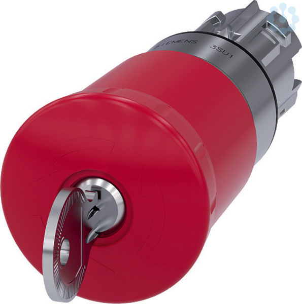 NOT-HALT-Pilzdrucktaster, 22 mm, rund, Metall, hochglanz, rot, 40 mm, mit Schloss BKS, Schließ-Nr. S1, zwangsläufige Verrastung, gemäß DIN EN ISO 13850, Schlossentriegelung NOT-HALT-Pilzdrucktaster SIRIUS ACT nach DIN EN ISO 13850 zur Steuerung von sicherheitsgerichteten Anwendungen mit Überlistsicherheit.Unter dem Markennamen SIRIUS ACT bietet Siemens ein einzigartiges Portfolio an Befehls- und Meldegeräten mit weltweiten Produkt-Zulassungen in drei modernen Designreihen aus robustem Echtmetall und hochwertigem Kunststoff.Das innovative Aufschnappkonzept vereinfacht die Montage so weit, dass dafür nur eine Hand und kein Spezialwerkzeug erforderlich ist. Als Montagebohrungen genügen nutfreie Löcher, da bereits ein 100%iger Verdrehschutz integriert ist.Dank der durchgängig hohen Schutzart sind die robusten Geräte industrietauglich und für den Außeneinsatz geeignet. Sogar die Reinigung mit Hochdruckstrahl ist möglich. Weder Staub, Öle noch aggressive Laugen können den zuverlässigen Betrieb stören.Neben der Standardverdrahtung können die meisten Geräte auch über PROFINET, AS-Interface oder IO-Link an die Steuerung angebunden werden. Damit reduzieren Sie Ihren Verdrahtungsaufwand, minimieren Fehlerquellen und gewinnen mehr Flexibilität.Komfortabel unterstützt der grafische Online-Konfigurator bei Auswahl und Bestellung von Einzelgeräten, Gehäusen und Beschriftungen. Umfangreiche Dokumentation (z.B. Handbuch, 3D-Daten, Anschlussdiagramm) ist verfügbar.Lieferbare Ausführungen: 30/40/60 mm Pilz-Durchmesser, beleuchtet/unbeleuchtet, Zug-/Dreh-/Schlossentriegelung.Hinweis: Einzelgerät, Halter und Module bitte extra bestellen.SIRIUS ACT - Performance in Action beim Befehlenund Melden. Einfach montiert, einfach stark, einfach perfekt.