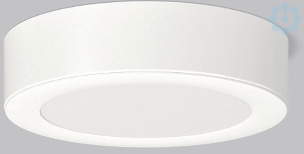 Superflaches LED Anbau-Downlight. Zur Rettungswegbeleuchtung. Zylindergehäuse Stahlblech pulverbeschichtet. Abdeckring Aluminium-Druckguss pulverbeschichtet. Lightguide und Diffusor aus vergilbungsfreiem PMMA opal matt. Betriebsgeräte integriert. Einzelbatteriesystem mit automatischem Selbsttest.