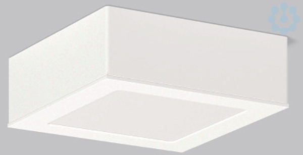 Superflaches LED Anbau-Downlight. Zur Rettungswegbeleuchtung. Anbaugehäuse Stahlblech pulverbeschichtet. Quadratische Abdeckplatte Aluminium-Druckguss pulverbeschichtet. Lightguide und Diffusor aus vergilbungsfreiem PMMA opal matt. Betriebsgerät gleichspannungstauglich, geeignet für zentrale Notstromversorgung.