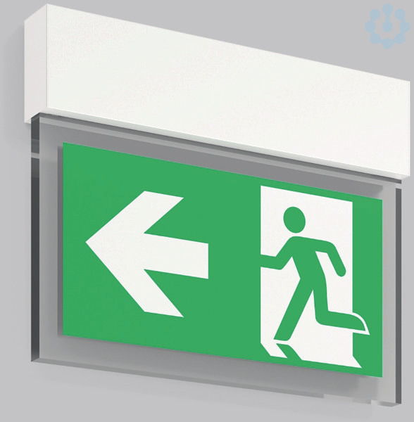 Leuchte zur Rettungswegkennzeichnung. Gehäuse Aluminium-Strangpressprofil eloxiert oder pulverbeschichtet. Displayscheibe Kunststoff hochtransparent mit Rettungszeichen einseitig. Betriebsgeräte integriert. Einzelbatteriesystem mit automatischem Selbsttest und Rückmeldung über DALI-Bus ausschließlich an das RZB DALI-Überwachungssystem.