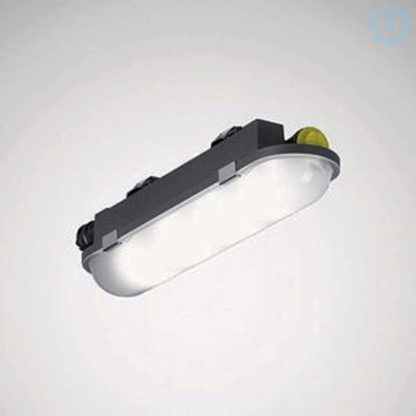 LED-Notleuchte für Bereitschaftslicht mit integriertem Einzelbatterie-System, Nennbetriebsdauer 1 Stunde. Für Feuchträume und überdachte Außenbereiche, Kühlhäuser, Industrieanlagen, Betriebsräume, Fluchttunnel, Parkhäuser sowie Feuchtraumbereiche jeder Art. Für Decken- und Wand- sowie abgehängte Montage. Montageclips und Triangelbügel für abgehängte Montage im Lieferumfang enthalten. Diebstahlsichere Montage mittels separat zu bestellender Diebstahlsicherung möglich. Bei einer Montagehöhe von 4 m wird im kreisräumigen Umfeld mit dem Radius 4.8 m in Bodennähe die erforderliche Not-Beleuchtungsstärke von 1 lx erreicht. Opale, lichtstreuende PC-Abdeckung für besonders gleichmäßige Ausleuchtung. LED-System bestehend aus 4 Mid-Power LED. Mit 2 Status-LED für Betriebs- und Ladezustandsanzeige. Opale, lichtstreuende PC-Abdeckung für besonders gleichmäßige Ausleuchtung. Bemessungslichtstrom 400 lm, Lichtfarbe neutralweiß, ähnlichste Farbtemperatur (CCT) 4000 K, Leuchtenkörper aus Aluminium-Druckguss. Robuste Konzeption mit erschütterungsfreien Komponenten. Maße in mm (L x B x H): 403 x 94 x 95. Zulässige Umgebungstemperatur (ta): 0 °C - +35 °C. Mit Anschluss-Stecker Typ WIELAND stirnseitig. Mit elektronischem Vorschaltgerät, schaltbar. Mit integriertem Selbsttest und Lade-Statusanzeige. Ladezeit des Ni-MH-Akkus (6 V, 1,6 Ah) bei Erstinbetriebnahme 24 h. Das Produkt erfüllt die grundlegenden Anforderungen der anwendbaren EU-Richtlinien und des Produktsicherheitsgesetzes und trägt die CE-Kennzeichnung.
