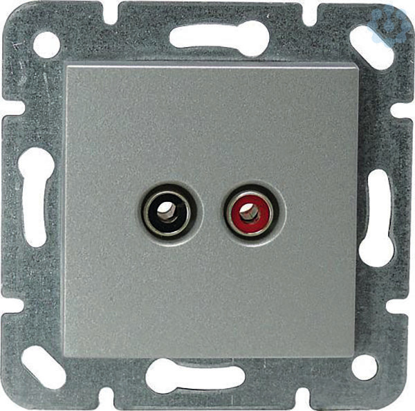 Novella Lautsprecher-Steckdose Stereo, Farbe silber, mit Kombizentralscheibe 50x50mm, 2 Cinch-Buchsen mit Lötanschluss