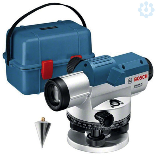 Optisches Nivelliergerät GOL 20 G. Robust und zuverlässig – optimal geeignet für den Außenbereich. Ideal für den Außeneinsatz durch ein robustes Gehäuse mit Staub- und Spritzwasserschutz (IP 54). Lichtstarkes Objektiv für ein scharfes Bild des Ziels. Sicherer Transport durch Sperrvorrichtung für den Kompensator. Im Lieferumfang enthalten: Einstelldorn, Innensechskantschlüssel, Transportkoffer (1 600 A00 0LF), Linsenschutz, Senklot